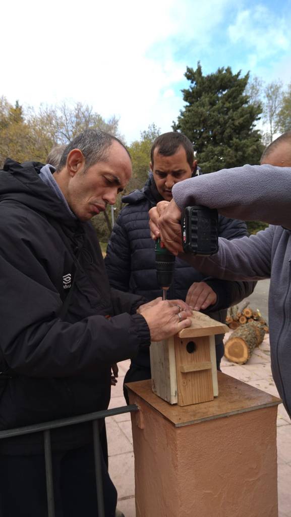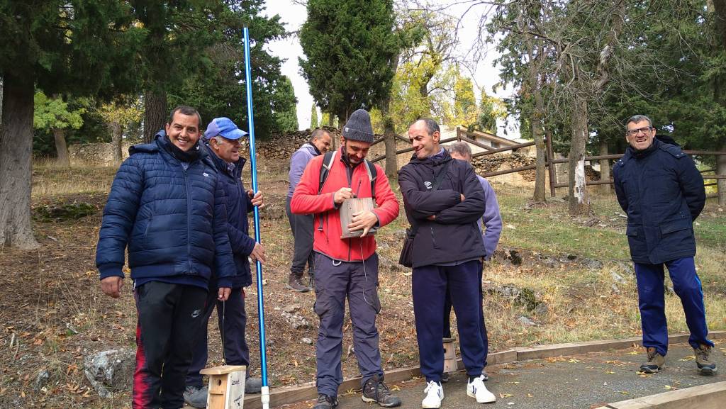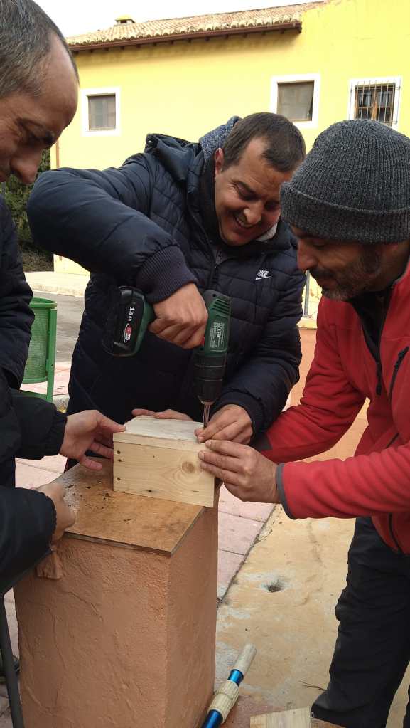 Como ya dijimos en el anterior artículo, hemos decido no solo colocar cajas si no establecer una RED de estas, de forma ordenada y coherente y con un mantenimiento y seguimiento. Para ese fin hemos trabajado durante los dos días (12 y 19 de noviembre) en tejer una caja nido en la zona de Narváez (P. N. Sª Baza) con un equipazo de personas usuarias del Centro Ocupacional Jabalcón.