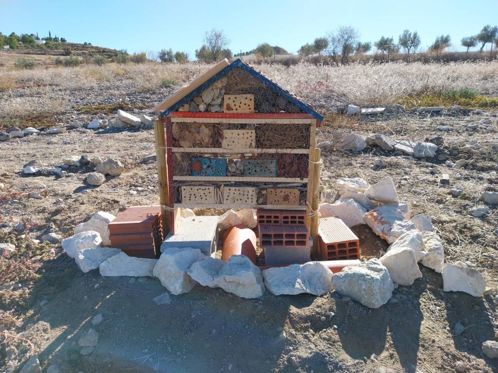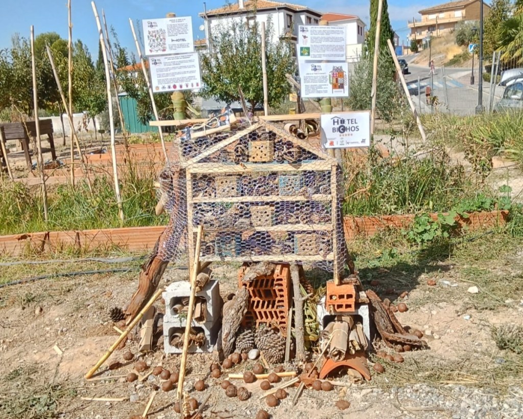 Hoteles de bichos en el proyecto Bosque Pueblo: El pasado 27 de noviembre, en el marco de esta iniciativa de restauración ambiental impulsada por el Ayuntamiento de Escúzar, con la colaboración de la Asociación Huella Verde e IDEA, que tiene por objetivo la creación de un entorno natural mediterráneo en una parcela cercana al municipio que había sido usada como depósito de escombros, los escolares del CEIP Cristo del Rescate de este pueblo crearon e instalaron dos hoteles de bichos Vario Pinto, que en un futuro no muy lejano, como decía la famosa película La Guerra de las Galaxias, serán acompañados por dos hoteles adicionales de este modelo más un gran hotel creado con palets. Por si quieres visitar este complejo de Hoteles te dejamos la ubicación del Bosque Pueblo.