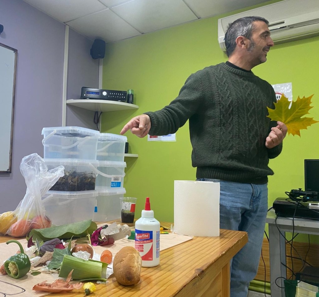 El 17 de diciembre realizamos la segunda sesión de formación que hemos ideado para formar y, sobre todo, motivar a los usuarios en esta extraña máquina llamada compostera. Esta es capaz de transformar un problema, residuos, en una oportunidad, compost, algo que suena a magia pero que se basa en un proceso natural que los ecosistemas llevan millones de años realizando (el ciclo de los materiales). Ahora los humanos lo han llamado “economía circular” (pues parece que poniendo la palabra economía gana más importancia) pero la naturaleza lleva reciclando desde mucho antes de que los humanos empezaran a considerarse sapiens. Tras el primer paso formativo realizado la semana que pasada, volcado en el “problema de los residuos”, ahora nos quisimos centrar en ese ciclo en el que el suelo se convierte en un organismo vivo y este termina por ser otra vez suelo. El suelo, y más en nuestra región, es el elemento más vital y que menos atención se le presta. Nuestros suelos se están degradando en calidad y cantidad siendo uno de nuestros mayores problemas y el compostaje puede ser un sistema para mimar un poco nuestros suelos, una formula humilde de devolver a la naturaleza parte de lo que nos ha dado.