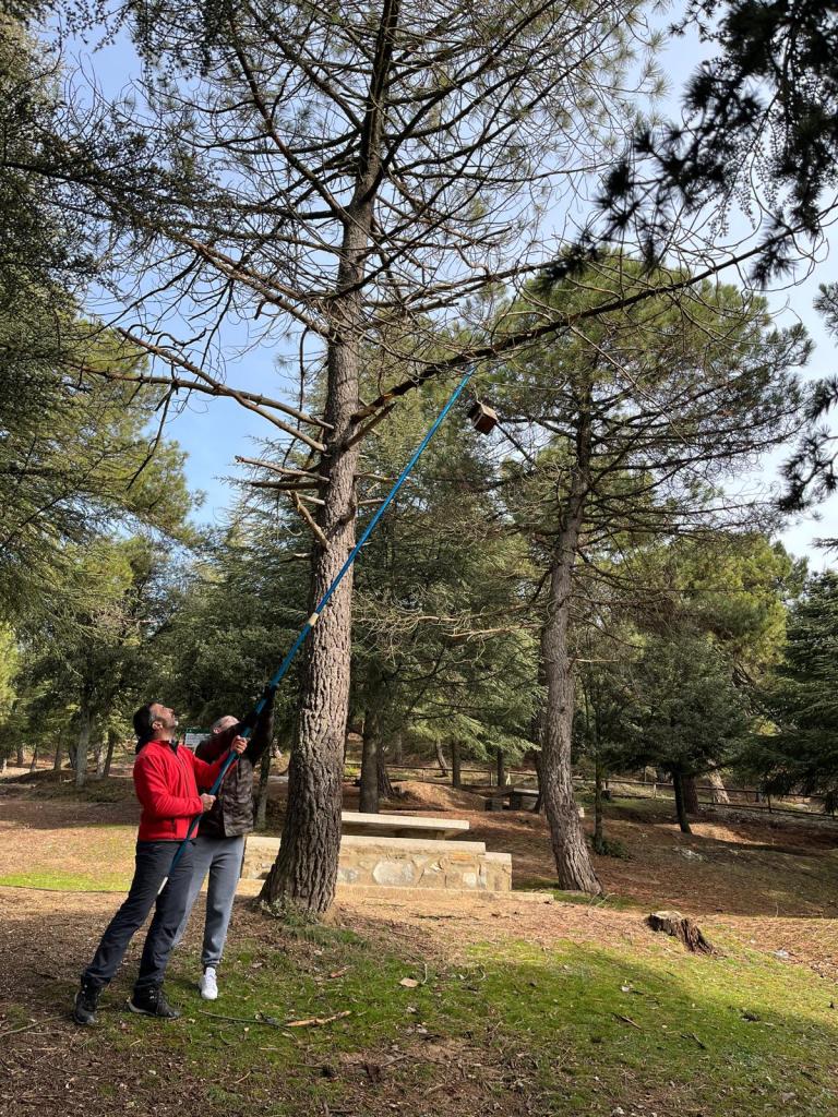 Bueno, y ya que subimos a la zona de la Alfaguara hicimos una revisión de unas cajas nido, algunas del “modelo Vario Pinto” que colocamos en una actividad de voluntariado a inicios de la primavera pasada. Solo descolgamos 3 cajas nido y en todas encontramos nido, nos quedaron más por revisar, pero ya nos esta entrando las ganas locas de crear la segunda red de Cajas Nido Vario Pinto, como sabes la primera está en Narváez y la gestionamos con los compañeros de Jabalcón.