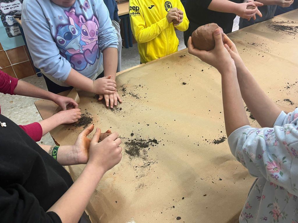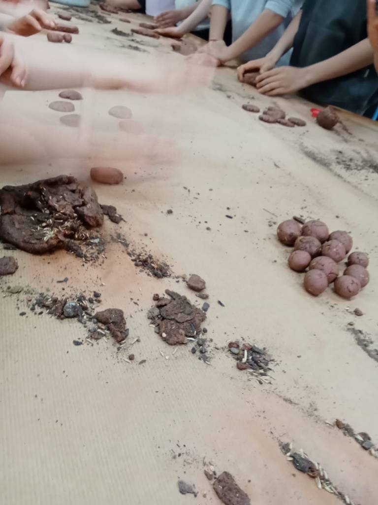 La mañana empezó con un taller dedicado a las Bombas de Semillas de Suelo pero antes de empezar a mancharnos haciéndolas quisimos dejar muy clara cuál es la misión de estas sencillas capsulas de arcillas. Para eso hicimos una dinámica que intenta hablar de la relevancia del suelo, elemento no valorado sufrientemente, y su vinculación con la cubierta vegetal. Salieron a relucir problemas como la deforestación, la erosión y la desertificación, pero también oportunidades como son el compostaje y la reforestación. Consideramos que todo quedo medianamente claro, pero por si el lector quiere saber más sobre el tema suelo y nuestras bombas de semillas, le recomendamos que vea el video-cuento que creamos hace unos meses.