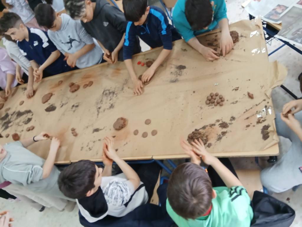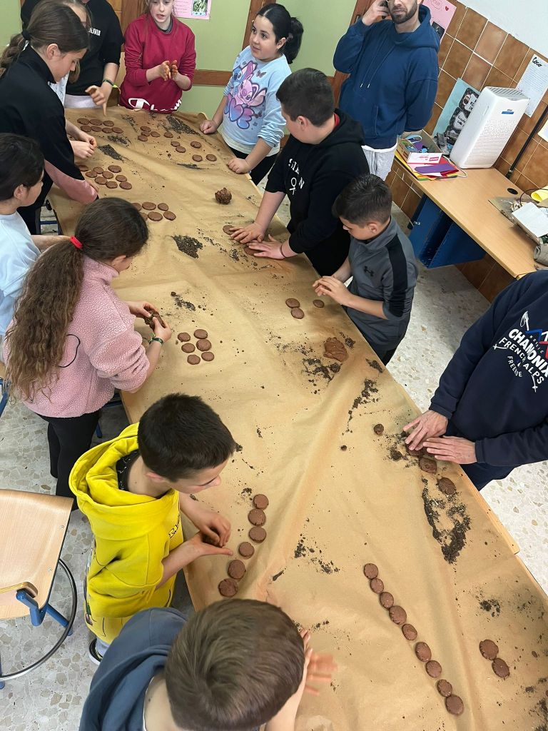 Cuando todos comprendimos que las bombas de semillas son más de lo que su humilde apariencia indica, nos pusimos a manufacturarlas. Afortunadamente para los alumnos/as participantes en este primer taller contamos con la ayuda de algunos de los mayores expertos de la comarca en Bombas de Semillas, los usuarios de la “Boronda”, grandes especialistas en el tema. Unas vez creadas las lanzamos para reverdecer una zona del patio que esta yerma.